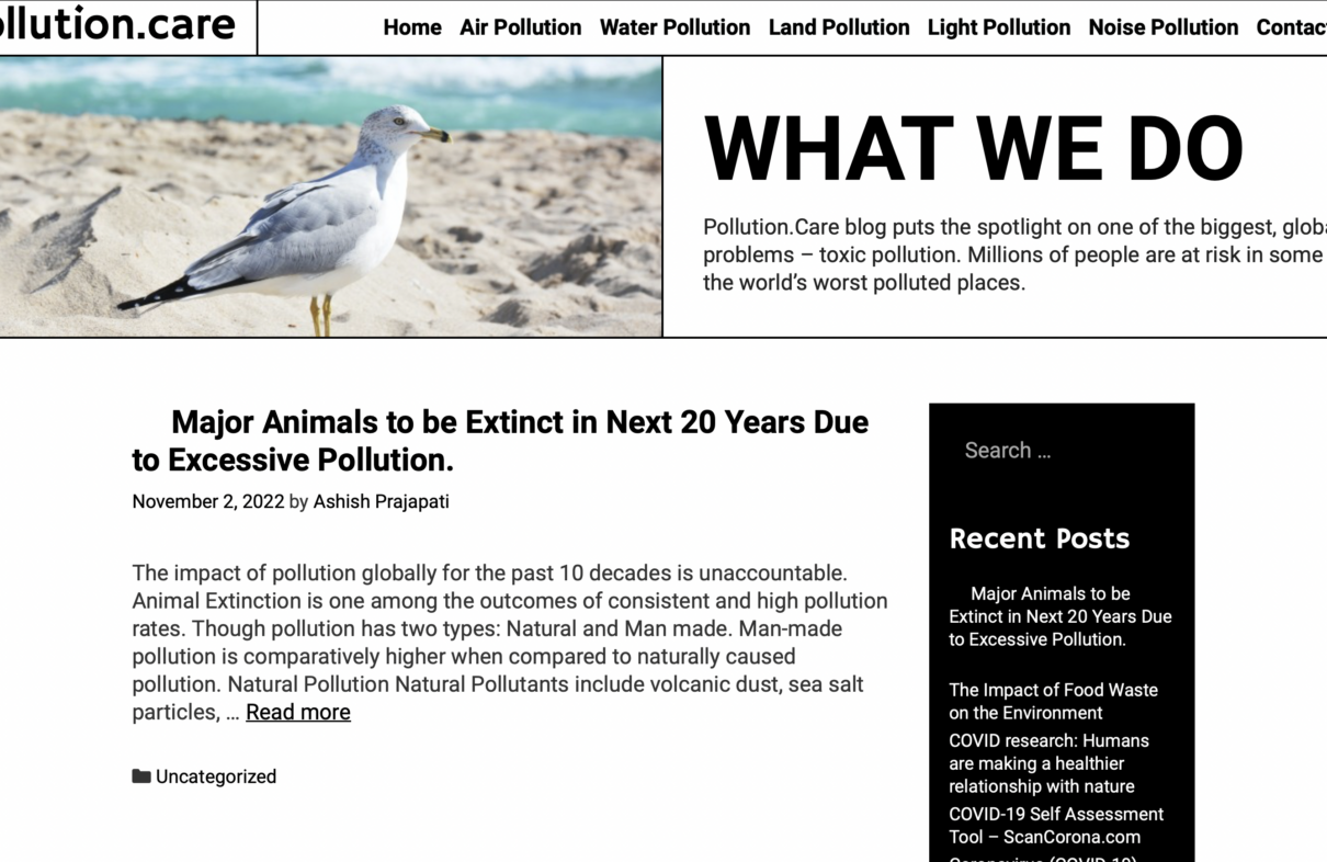 Introducing “Pollution.Care,” an innovative web application designed to raise awareness about the increasing pollution in our environment. Our platform provides users with the tools they need to understand and take action against various types of pollution, including air, water, light, noise, and land pollution.